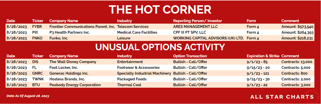 Here’s The Hot List, with data through August 28, 2023: