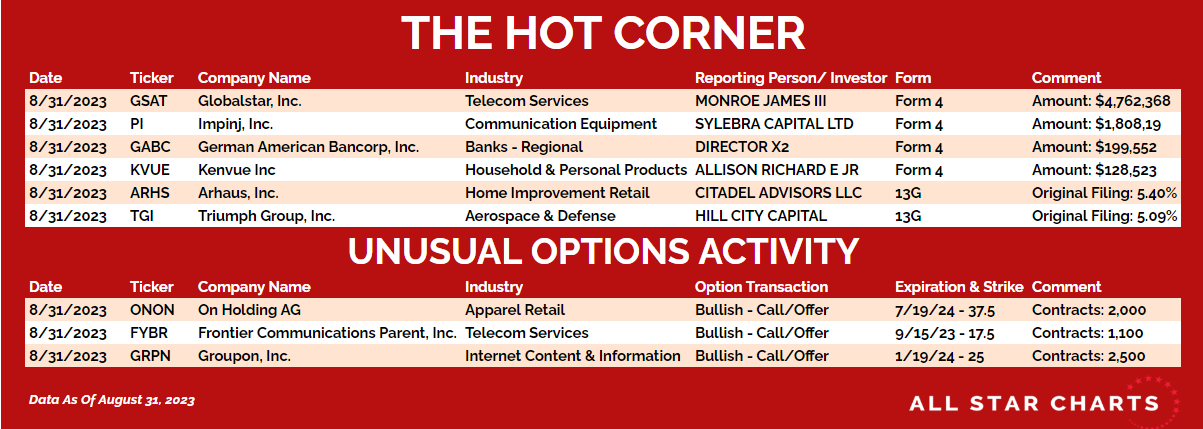Here’s The Hot List, with data through August 31, 2023: