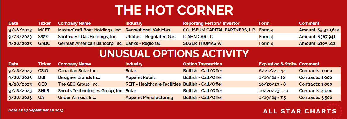Here’s The Hot List, with data through September 28, 2023: