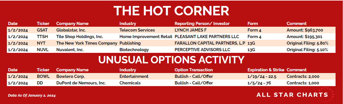 Here’s The Hot Corner, with data through January 2, 2024: