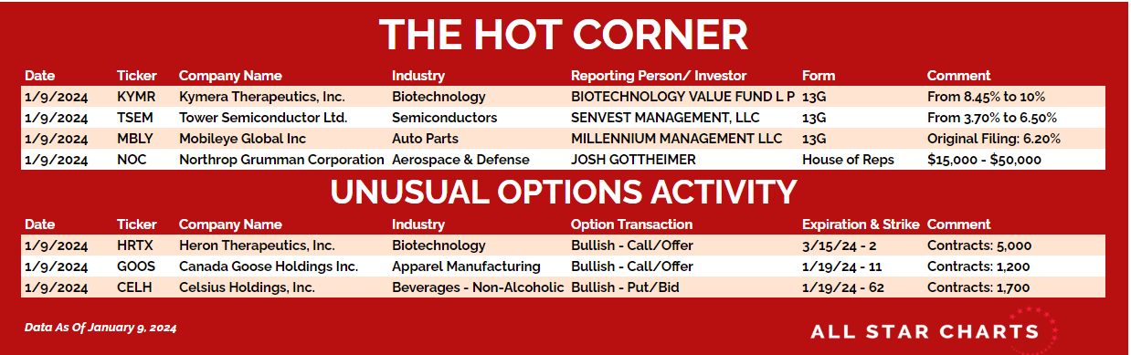 Here’s The Hot Corner, with data through January 9, 2024: