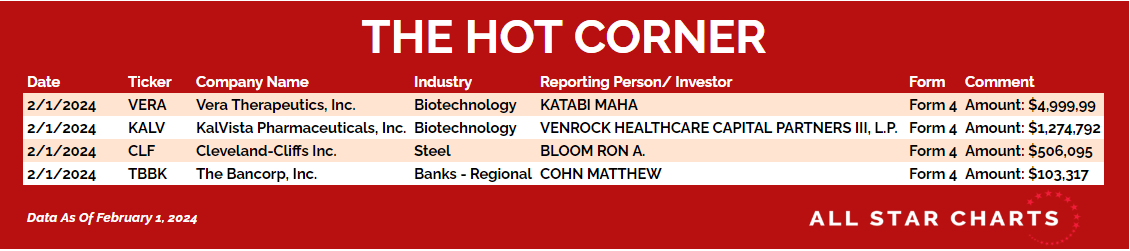 Here’s The Hot Corner, with data through February 1, 2024: