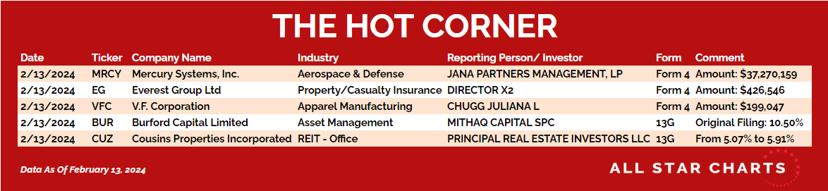 Here’s The Hot Corner, with data through February 13, 2024: