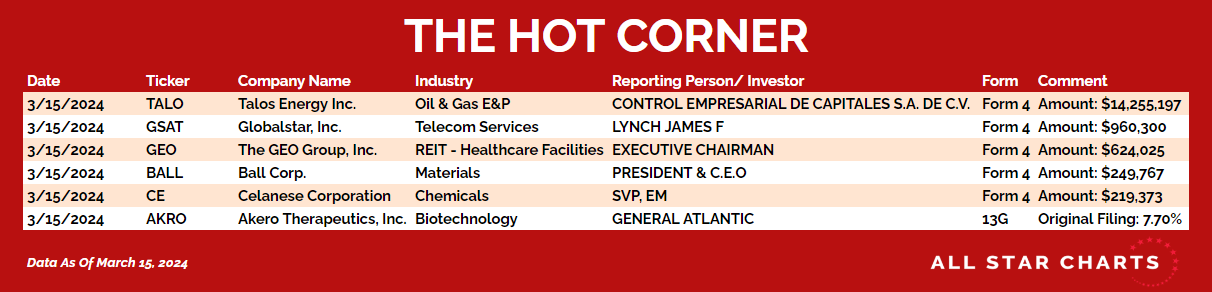 Here’s The Hot Corner, with data through March 15, 2024: