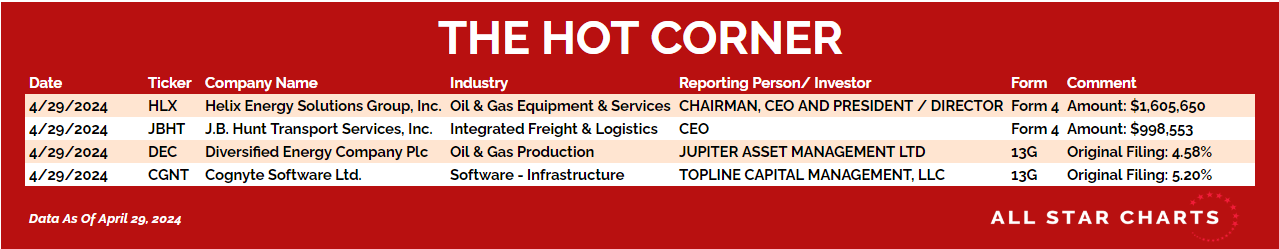 Stay tuned. We’ll be back on Wednesday with more insider activity.