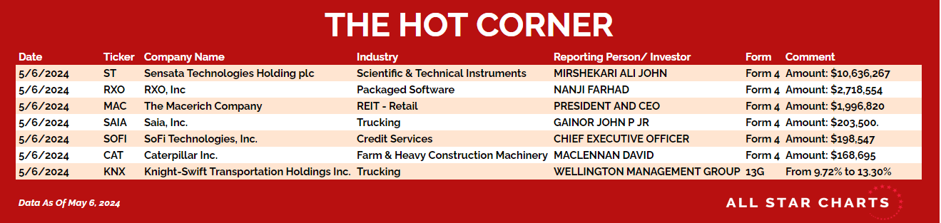 Here’s The Hot Corner, with data through May 6, 2024: