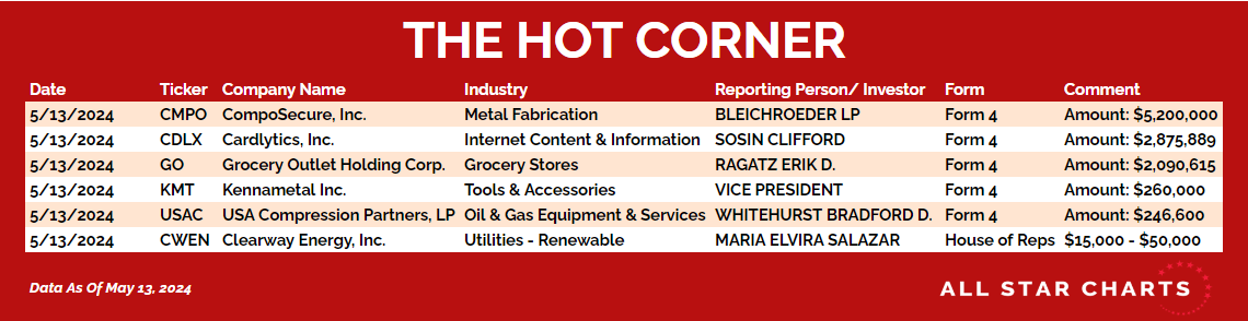 Here’s The Hot Corner, with data through May 13, 2024: