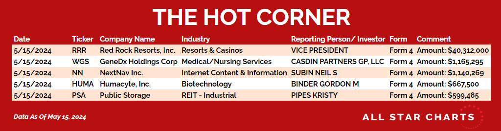 Here’s The Hot Corner, with data through May 15, 2024: