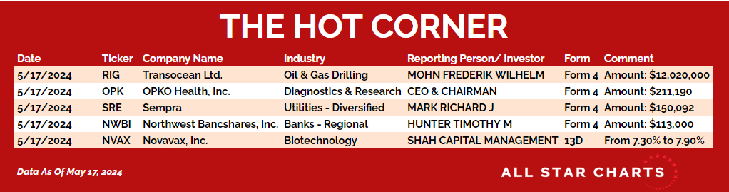 Stay tuned. We’ll be back on Tuesday with more insider activity.