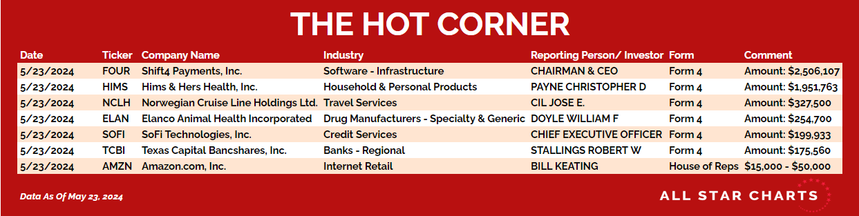 Here’s The Hot Corner, with data through May 23, 2024: