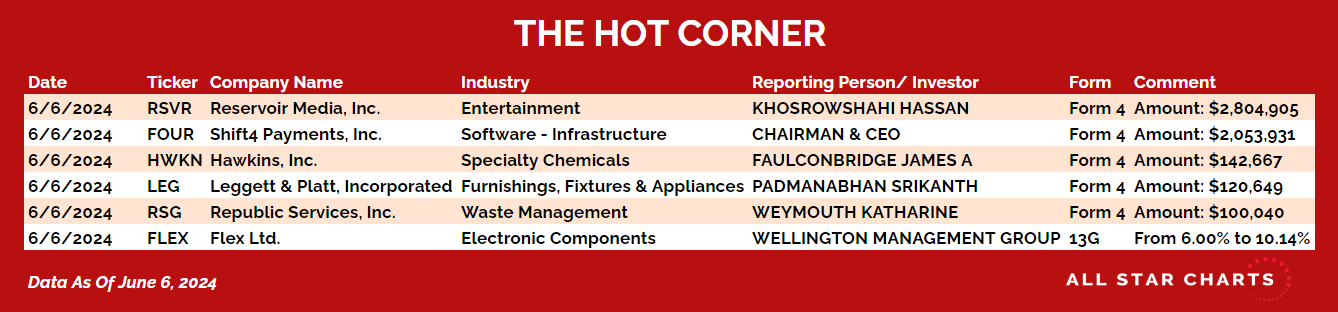 There was also insider activity in Republic Services $RSG, Hawkins Inc $HWKN, and Leggett & Platt Incorporated $LEG.