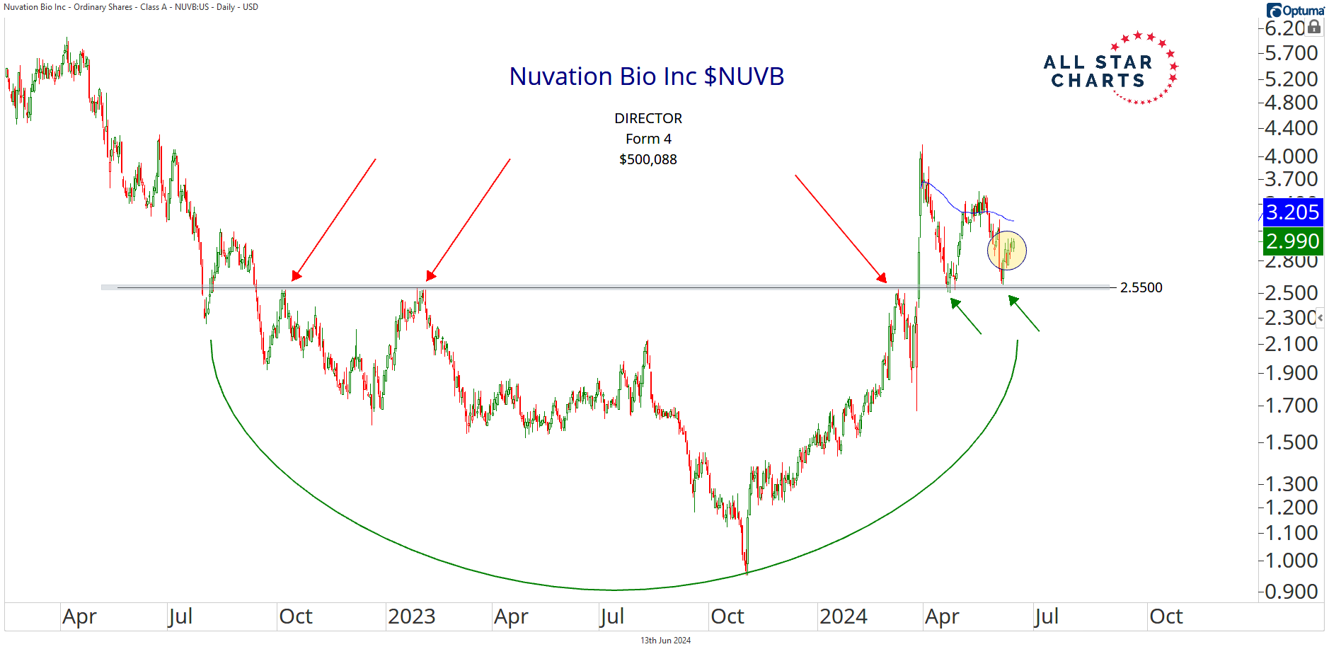 Fast-forward to today, and NUVB pulled back to the breakout level. However, buyers successfully showed up at former resistance to maintain control.
