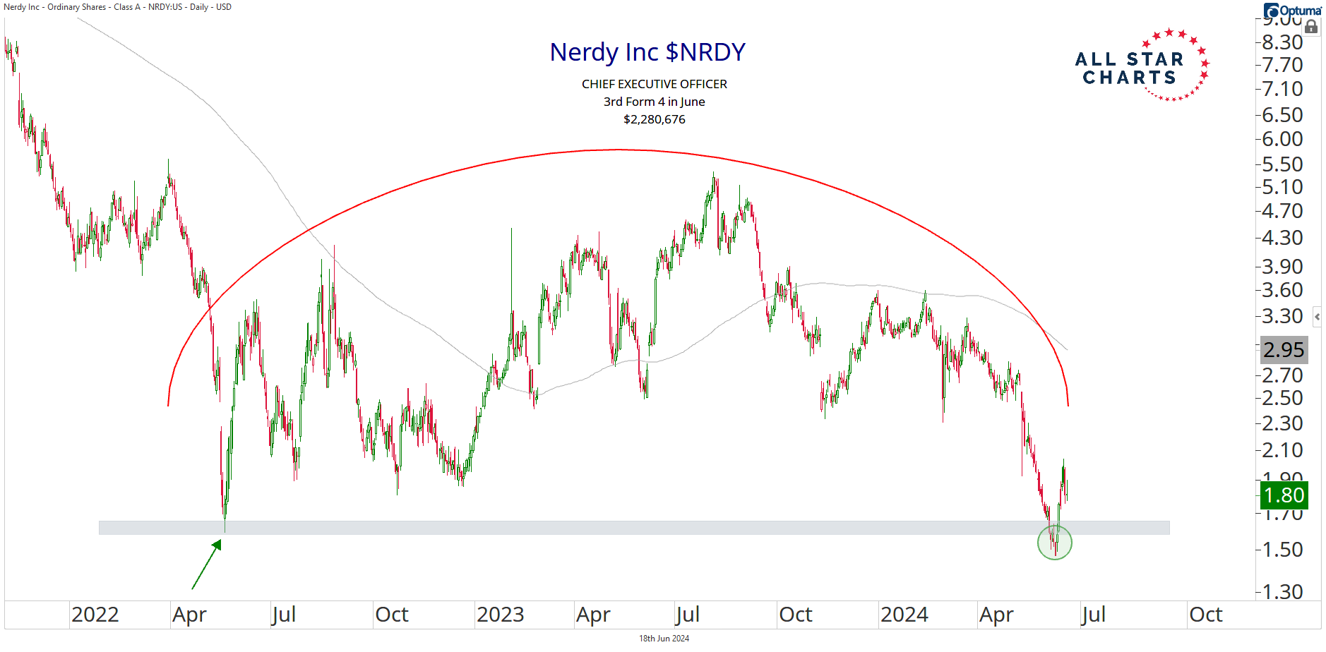NRDY experienced a nasty whipsaw earlier in the month, making new all-time lows.