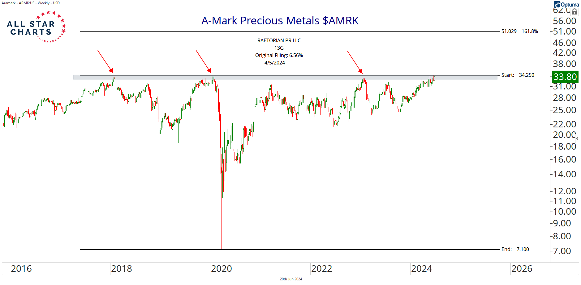 After spending the last few years carving out a rounding bottom formation, the stock has experienced incredible momentum in recent weeks, surging through the upper bounds of the base.