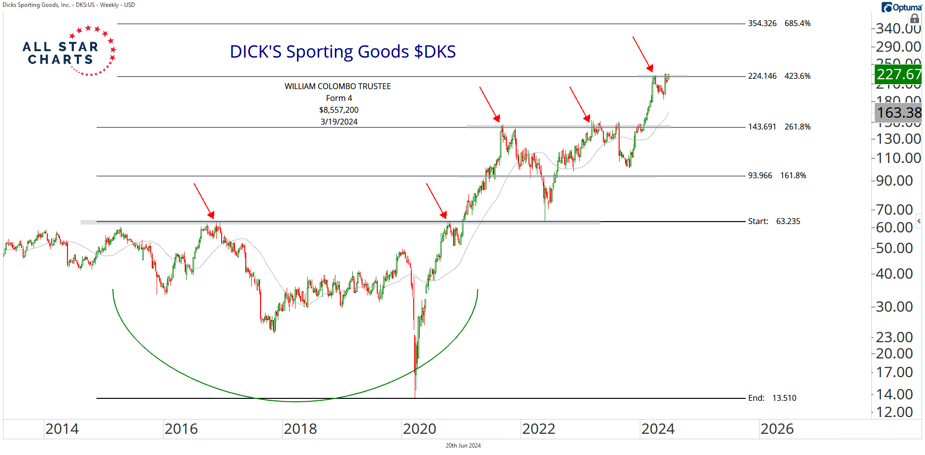 DKS has been in a structural uptrend since it broke out of a big base in early 2021.