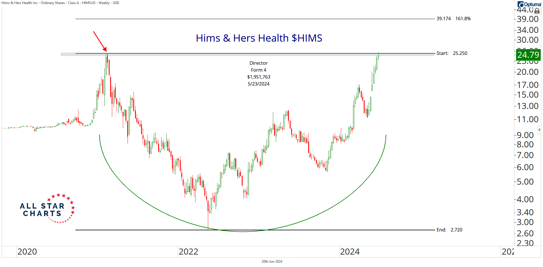 Our following setup is the $4.8B telehealth platform provider, Hims & Hers Health $HIMS: