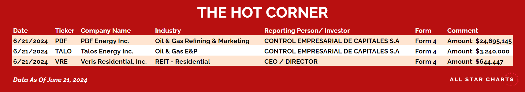 Here’s The Hot Corner, with data through June 21, 2024: