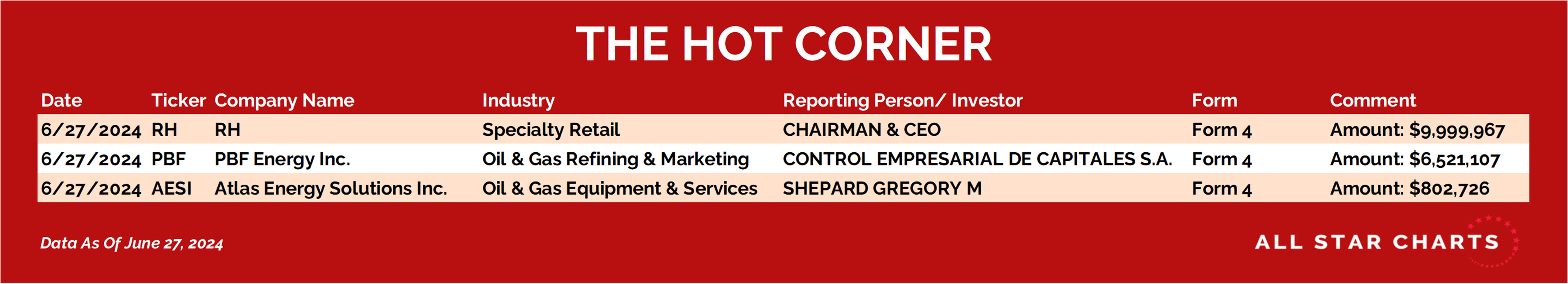 Have a great weekend. We'll be back on Monday with more insider activity.