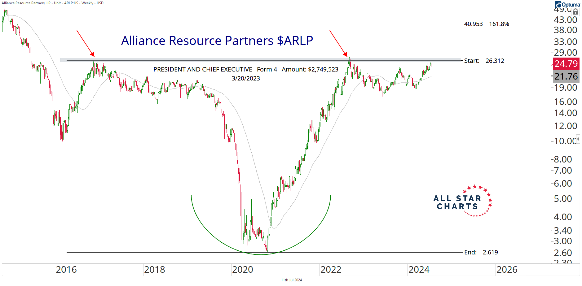 ARLP has traded in a well-defined range for the past two years as buyers absorb overhead supply at a critical resistance area.