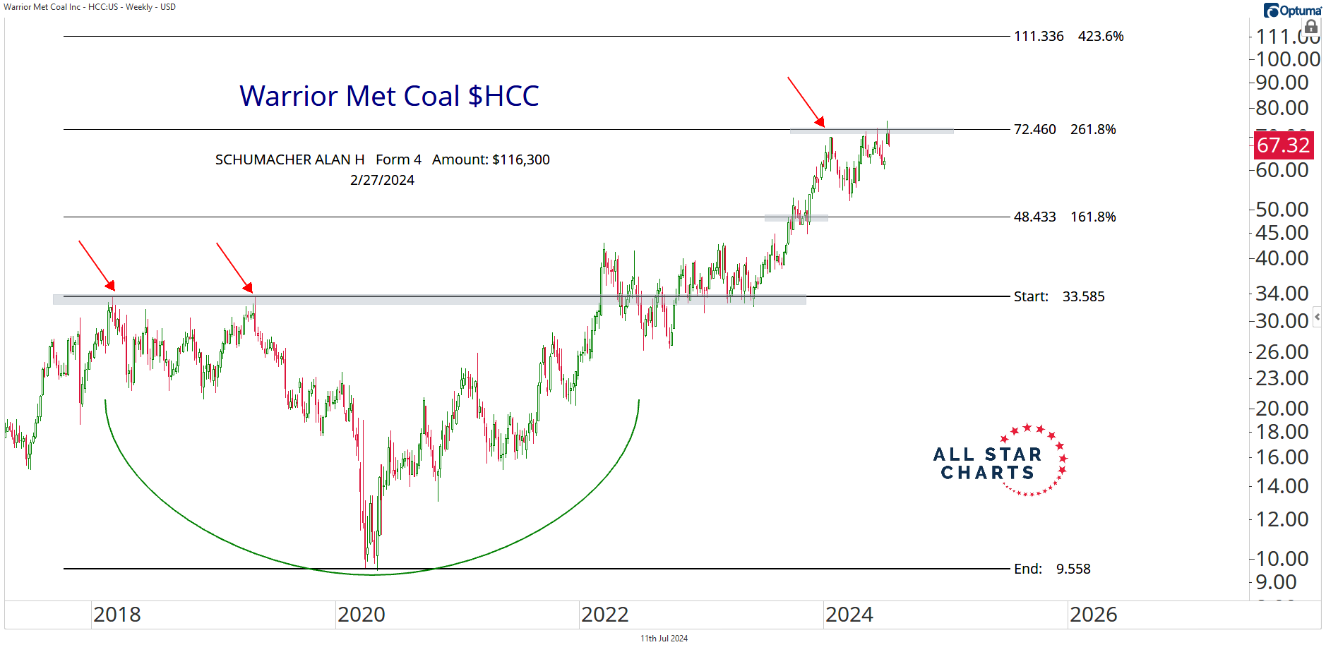 HCC has enjoyed a nice run since last summer and is currently halting its advance at the 261.8% extension level.