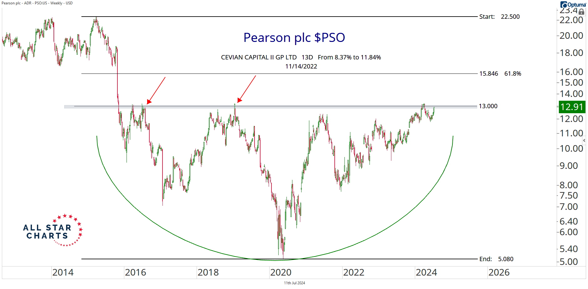 Our next setup is a $8.6B multinational corporation focused on educational publishing and services, Pearson PLC $PSO: