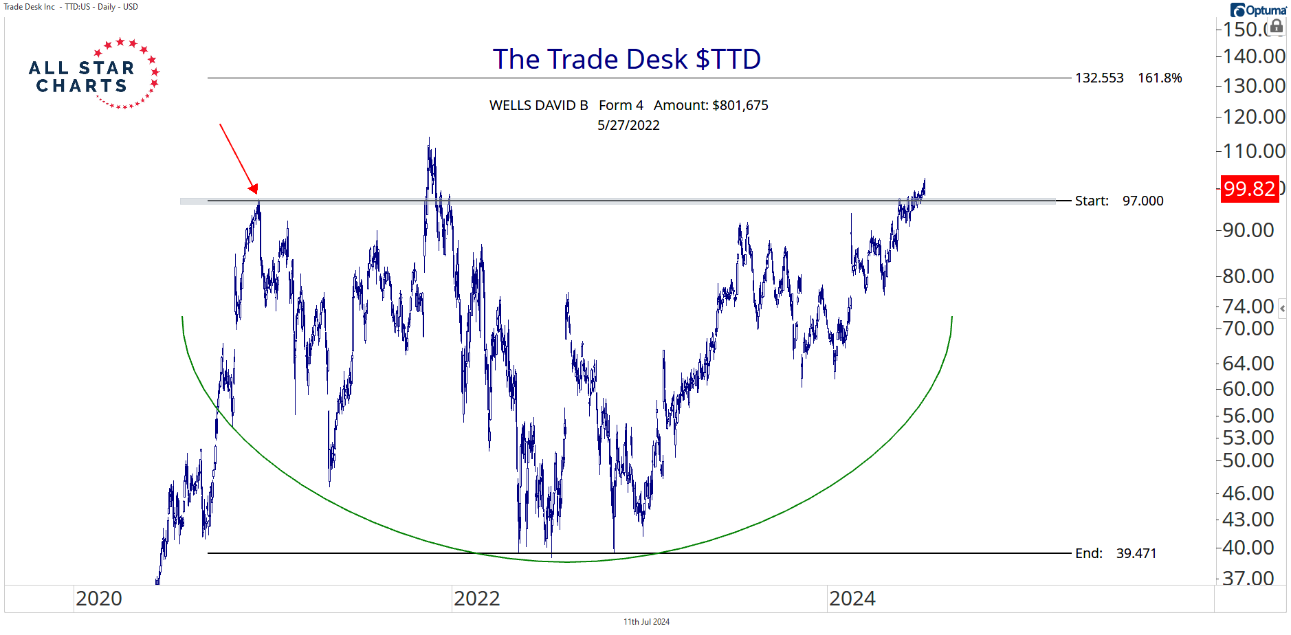 If TTD holds above 97, the path of least resistance is higher. We’re targeting 132.50 over the coming 3-6 months.