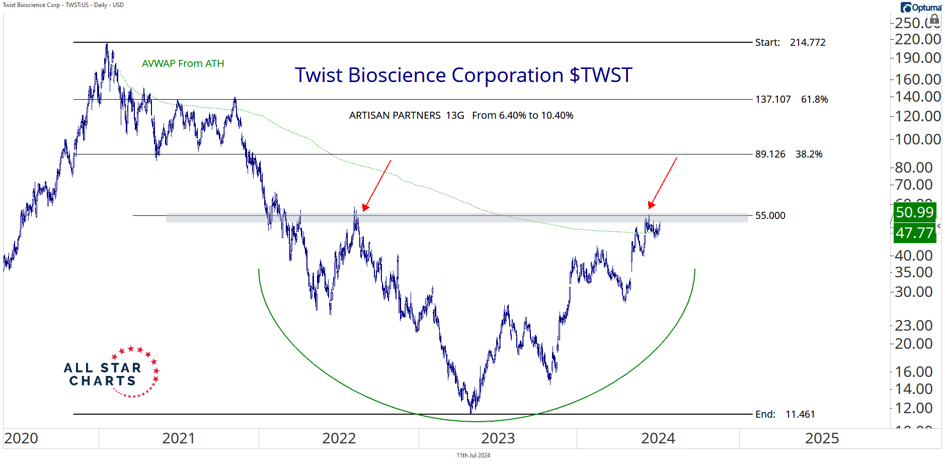 Our first setup of the day is a $3B biotech company, Twist Bioscience Corporation $TWST: