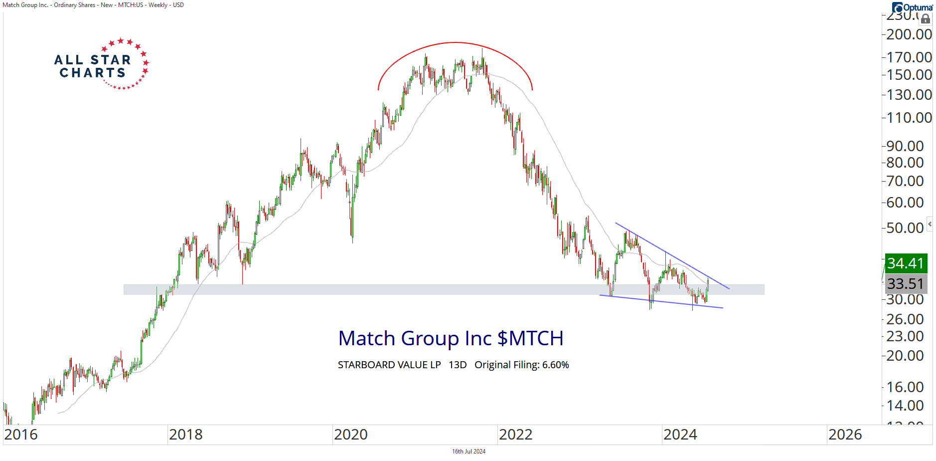 The Hot Corner Alfonso De Pablos tracks insider buys to spot smart money moves. Starboard Value Takes a 6.6% Stake in MTCH By Steve Strazza July 17, 2024 The most significant insider buy on today's list comes via a 13D filing by Starboard Value LP.Earlier in the week, the hedge fund revealed an original stake of 6.60% in Match Group Inc $MTCH.Starboard has already sent a letter to executives and the board, which you can access here.Here’s The Hot Corner, with data from July 16, 2024: Two directors of Zevra Therapeutics Inc $ZVRA, John B. Bode and Thomas Anderson, filed Form 4s revealing purchases of a combined amount of $146,629.After a prolonged decline since October 2021, MTCH stopped going down late last year.As you can see, price is building a short-term bottom as it threatens to break higher from a falling wedge.If there's a place and a moment for bulls to take control, we think this is it. MTCH also experienced a whipsaw earlier this year, briefly violating a critical support level. For now, buyers have reclaimed this former low.If we're above 33, the risk is to the upside, especially in the current market environment…Stay tuned. We'll be back on Thursday with more insider activity.And please reach out with any questions. We love hearing from you! For questions about your membership, contact us at 323-421-7910 or info@stockmarketmedia.com More from The Hot Corner Alfonso De Pablos, CMT Director Laurette T. Koellner Reports a $2.05 Million $CLS Purchase October 31, 2025 Alfonso De Pablos, CMT The Whole C-Suite Is Buying $OBK Shares October 29, 2025 Alfonso De Pablos, CMT Executive Chairman Richard Kinder Reports a $26 Million $KMI Purchase October 29, 2025 Follow the Smart MoneyThe Hot Corner tracks where corporate insiders are buying — revealing which companies top executives are betting on before the crowd. You must have JavaScript enabled to use this form. Email Address