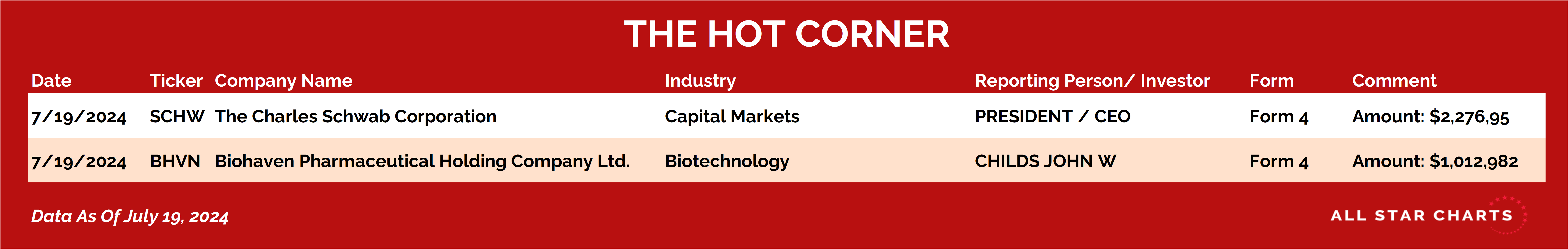 Here’s The Hot Corner, with data from July 19, 2024: