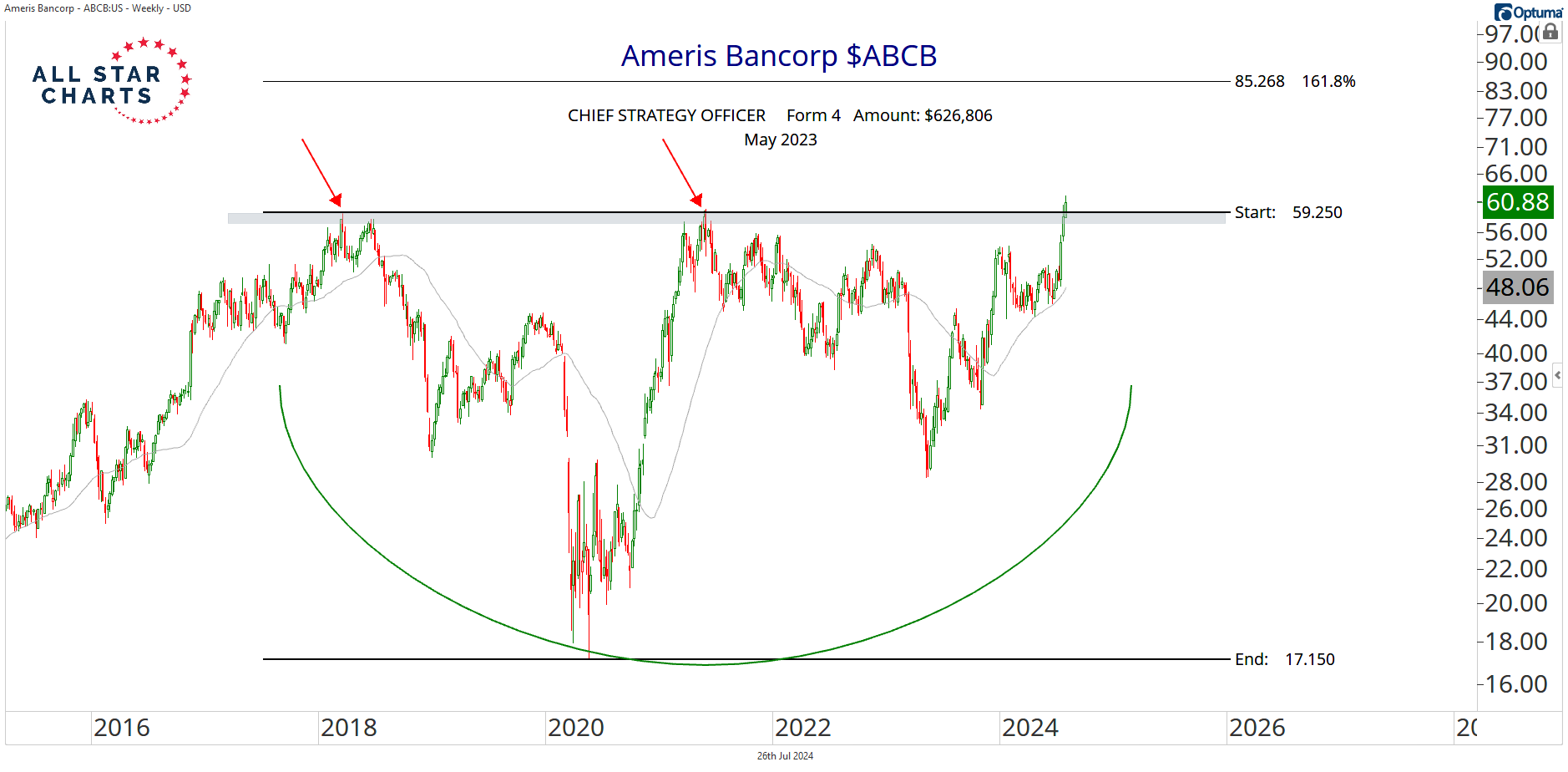 Our next setup is the retail and institutional bank from Georgia, Ameris Bancorp $ABCB: