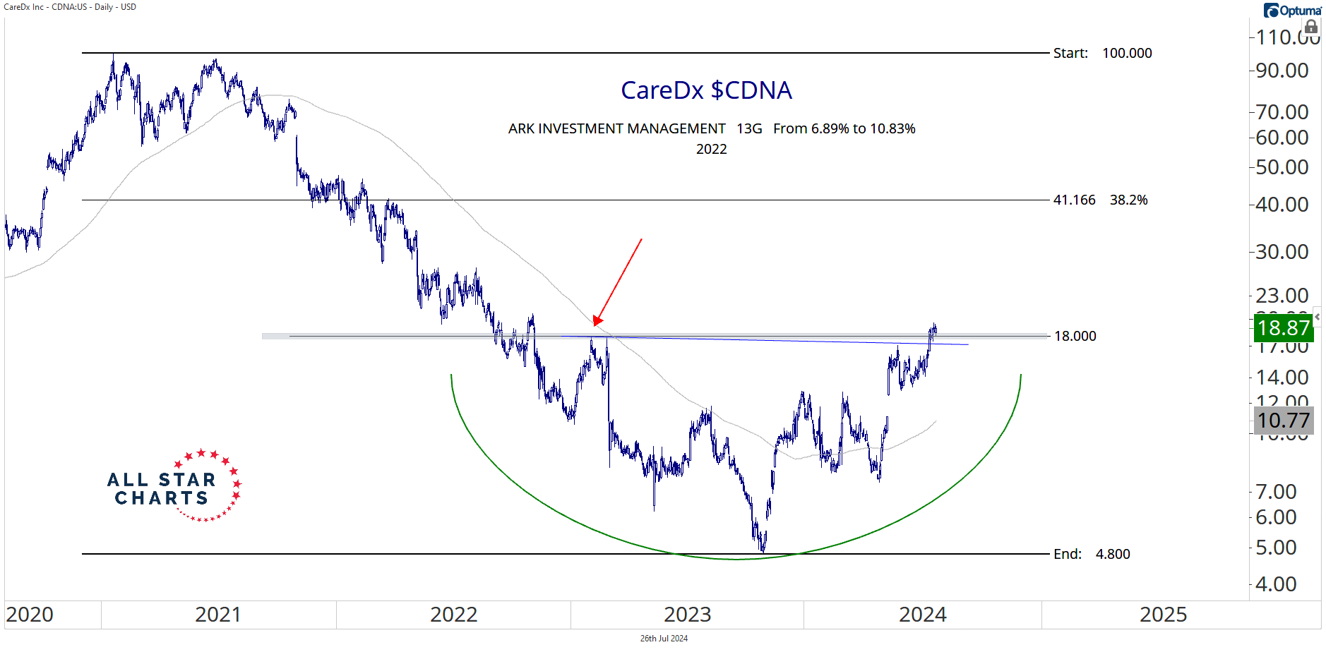 We want to own CDNA if it’s above 18, with a target of 41 over the coming 3-6 months. Over longer timeframes, we’re looking at a secondary objective at the former all-time high near 100, but we’ll be sure to follow up when the time comes.