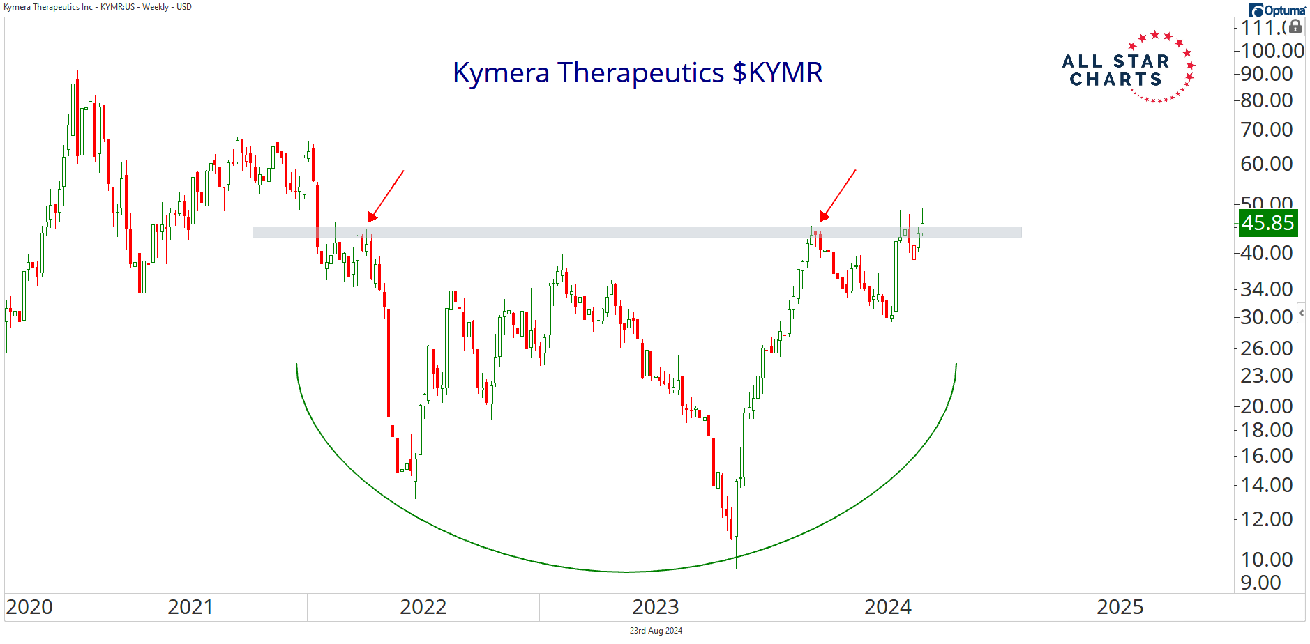 KYMR has been carving out a rounding bottom formation for the past two and a half years.