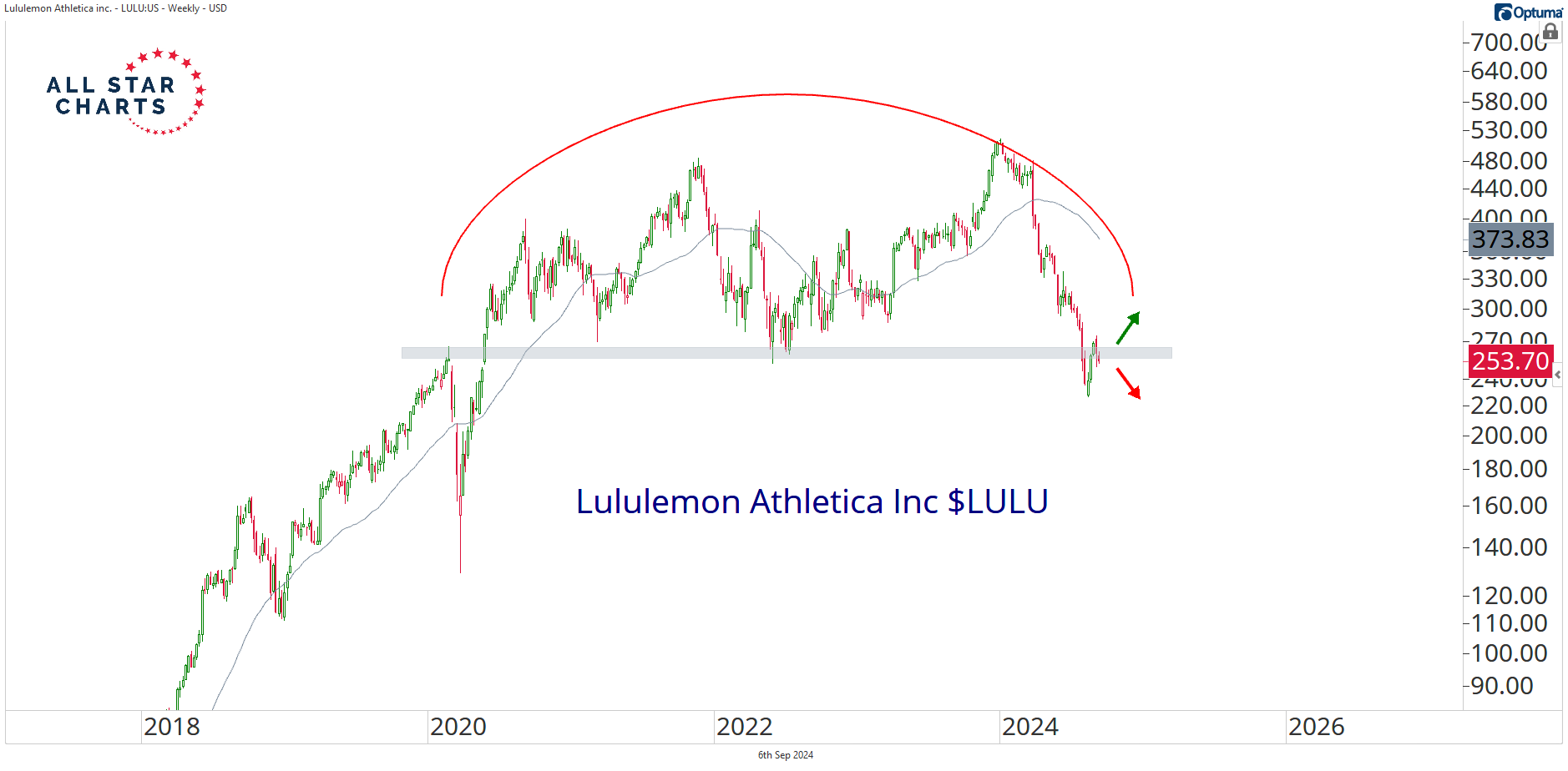 The line in the sand for LULU lies at 250. If we break below this level, expect further downside.