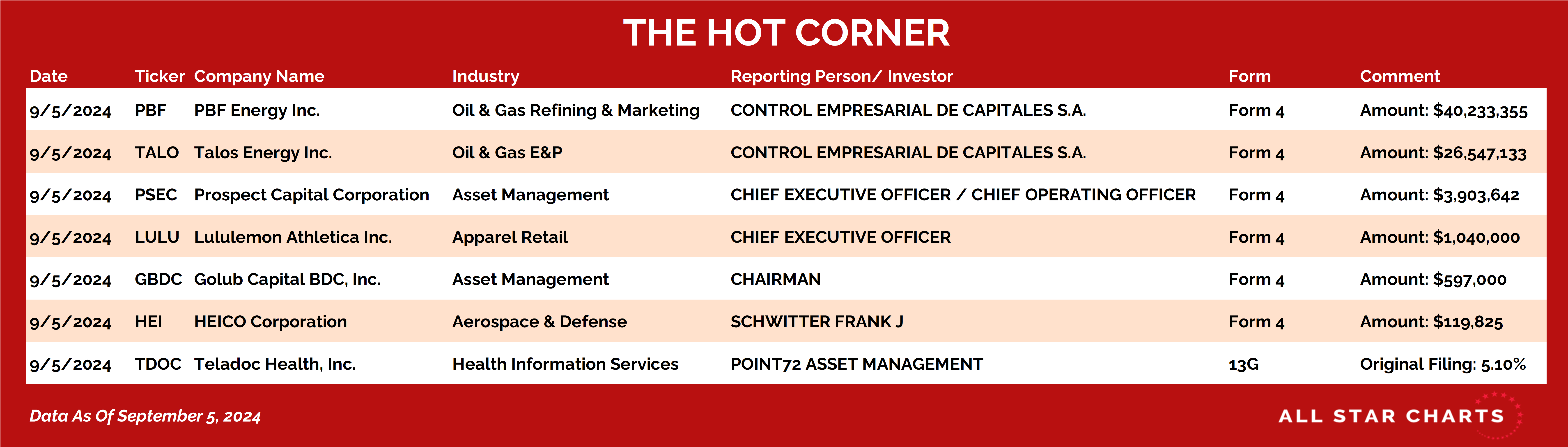 Have a great weekend. We'll be back on Monday with more insider activity.