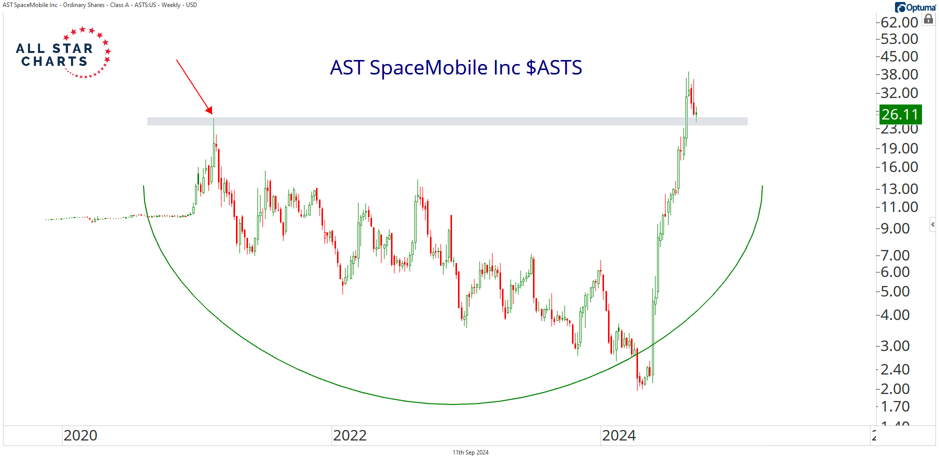 ASTS went from $2 to $40 in a matter of five months. Price is now finding support at a key former high from 2021.