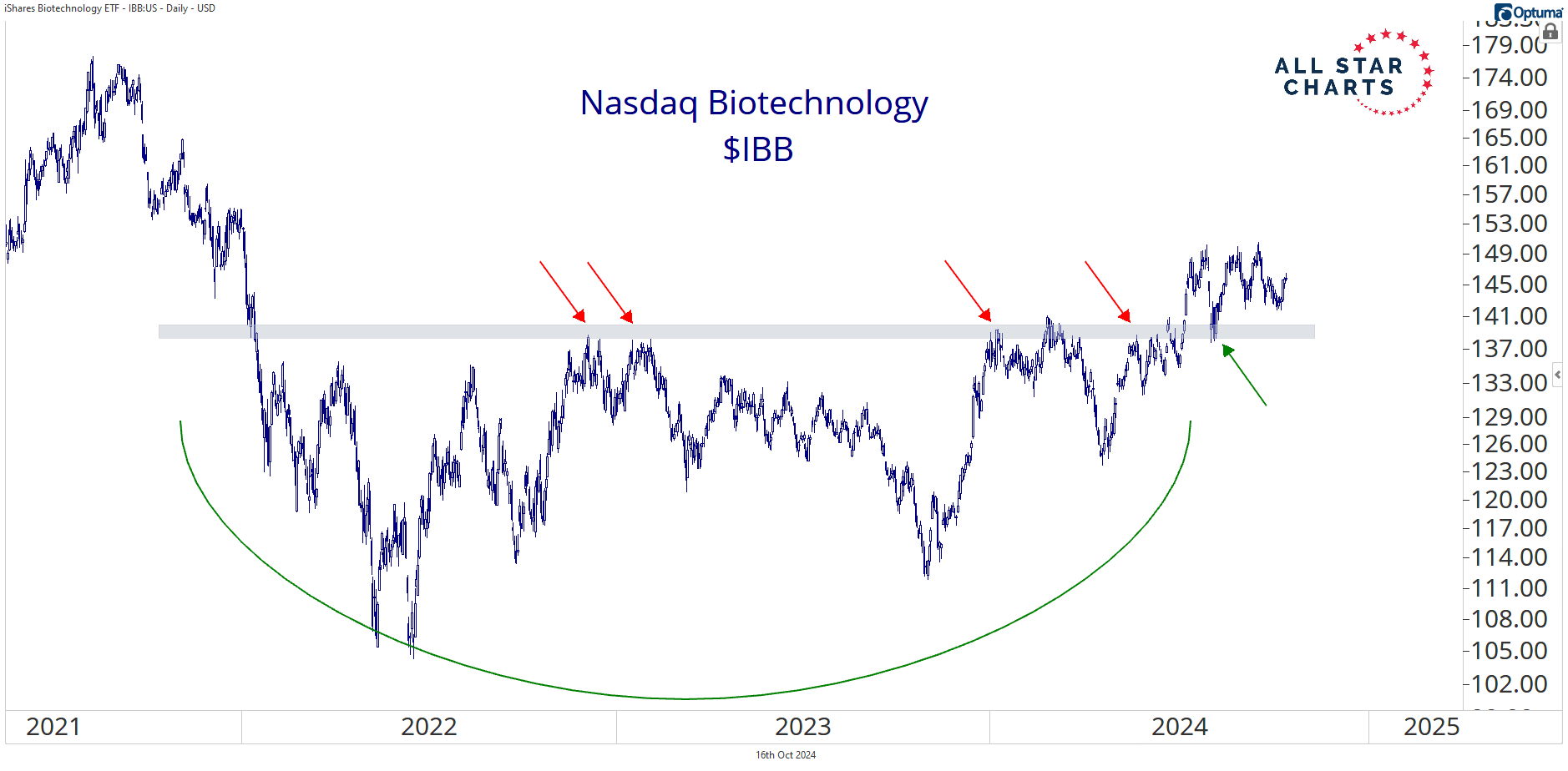 As long as we’re above the upper ends of this base, we have to be long biotech.
