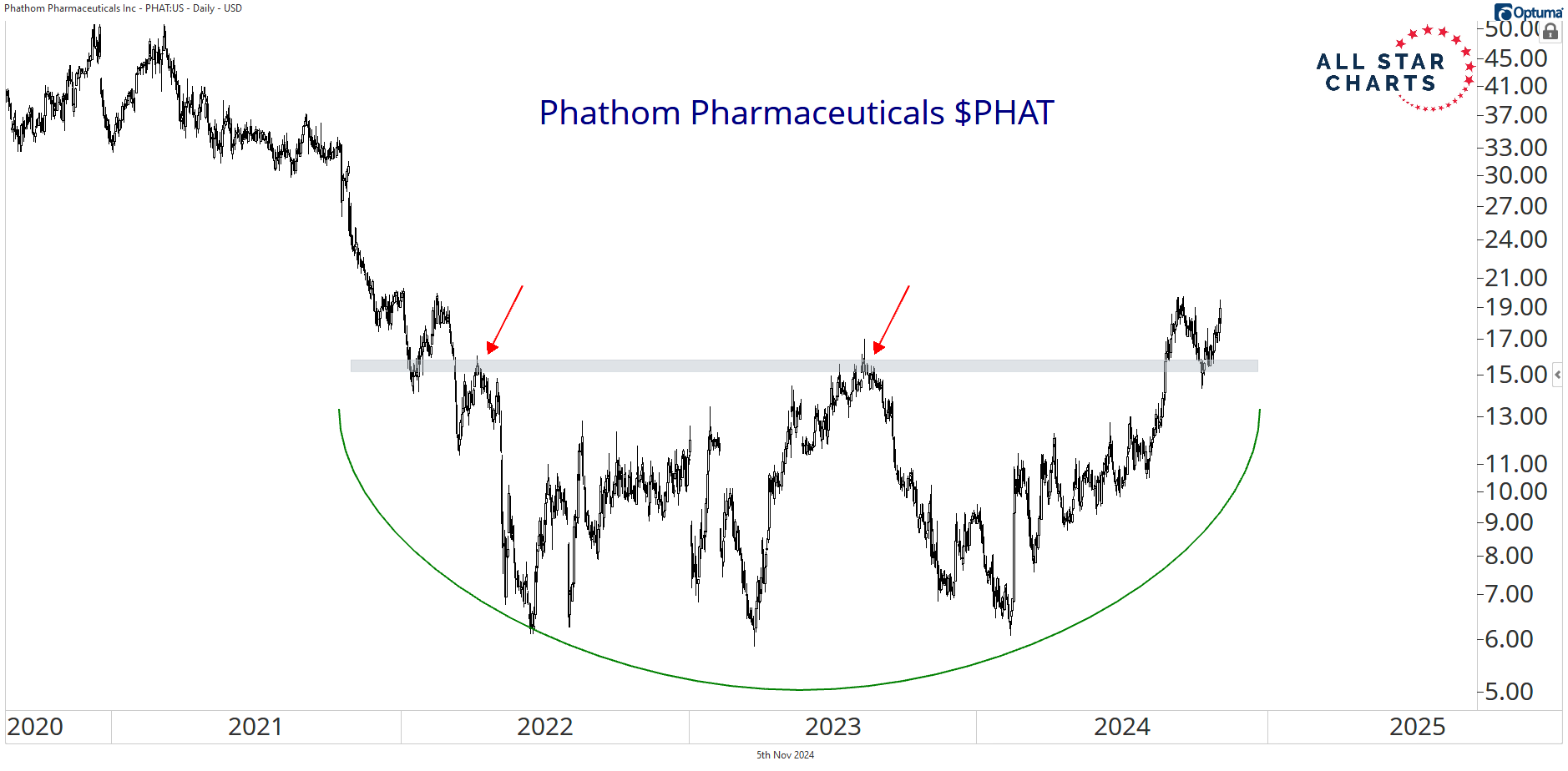 As you can see, PHAT is resolving higher from a bearish-to-bullish reversal pattern: