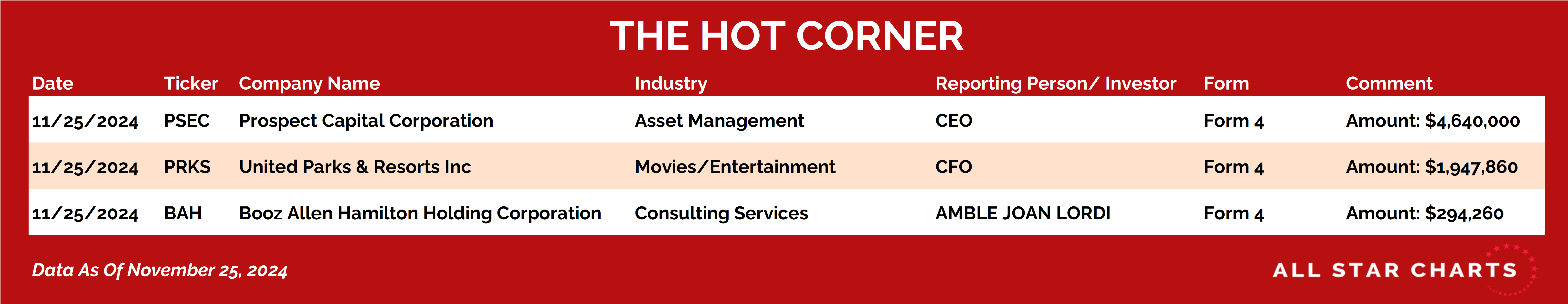 Here’s The Hot Corner, with data from November 25, 2024: