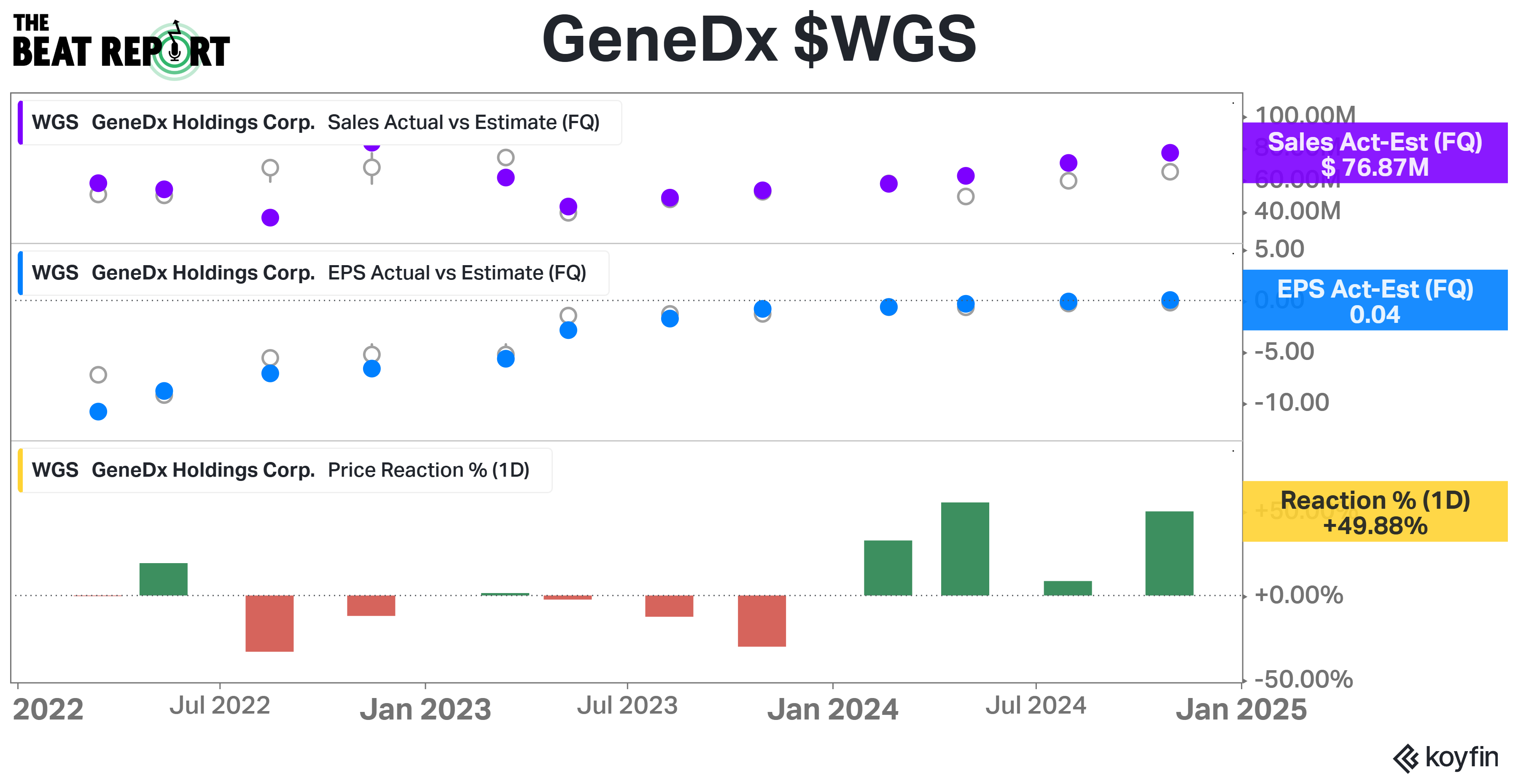 GeneDx is also sporting a beat streak of 4 quarters.