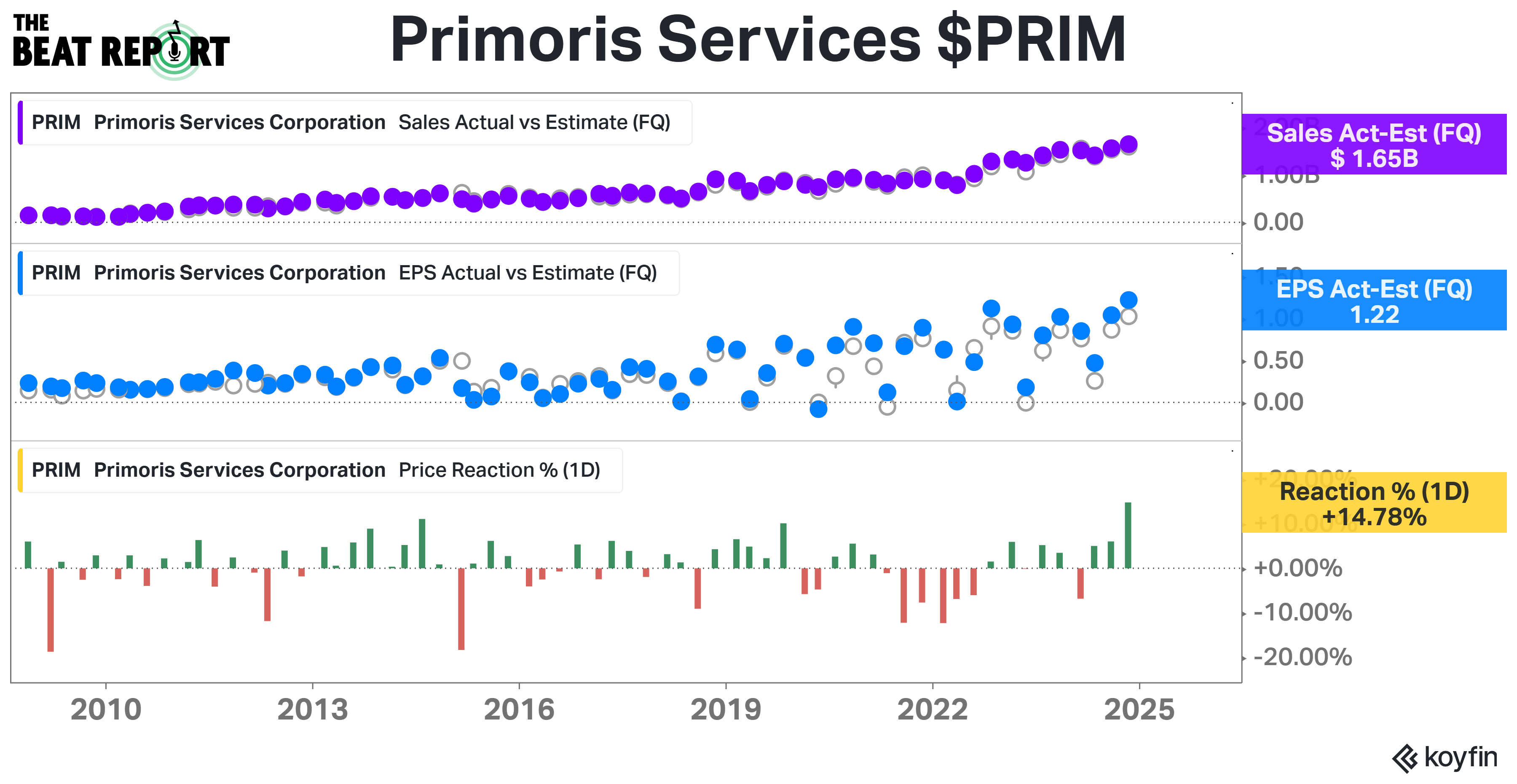 Q4 2024 was the best earnings reaction ever for $PRIM: