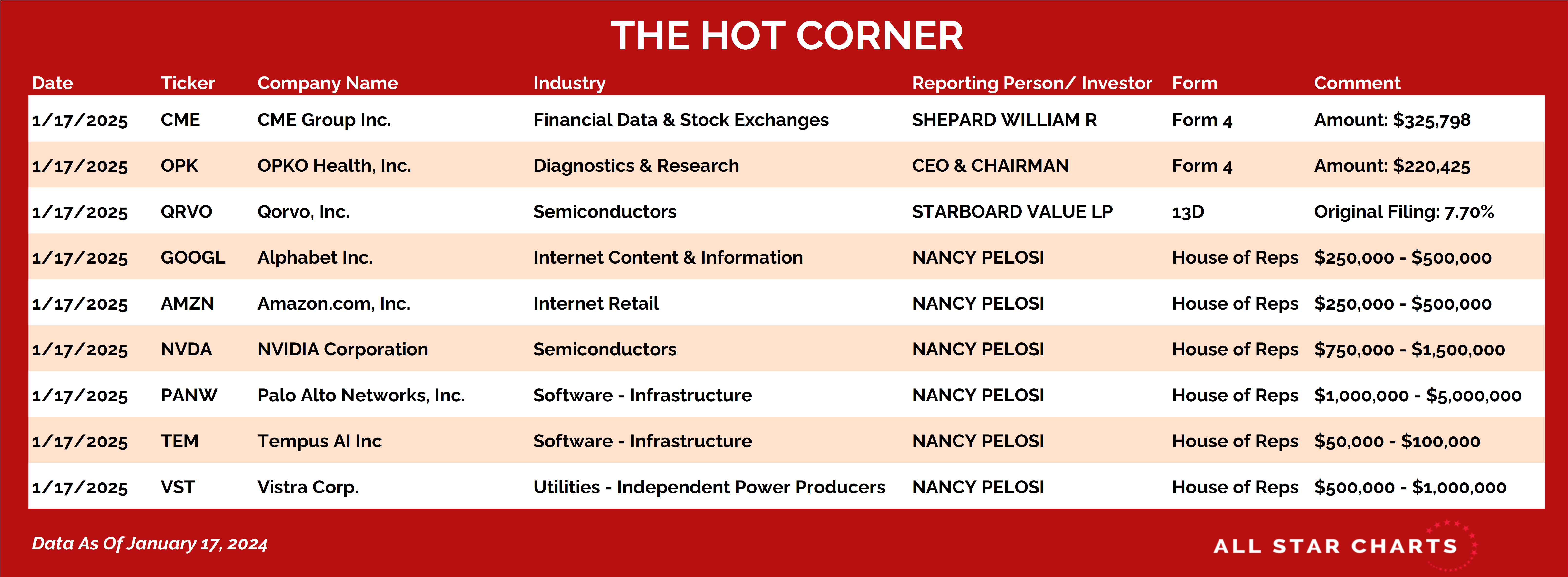 Here’s The Hot Corner, with data from January 17, 2025: