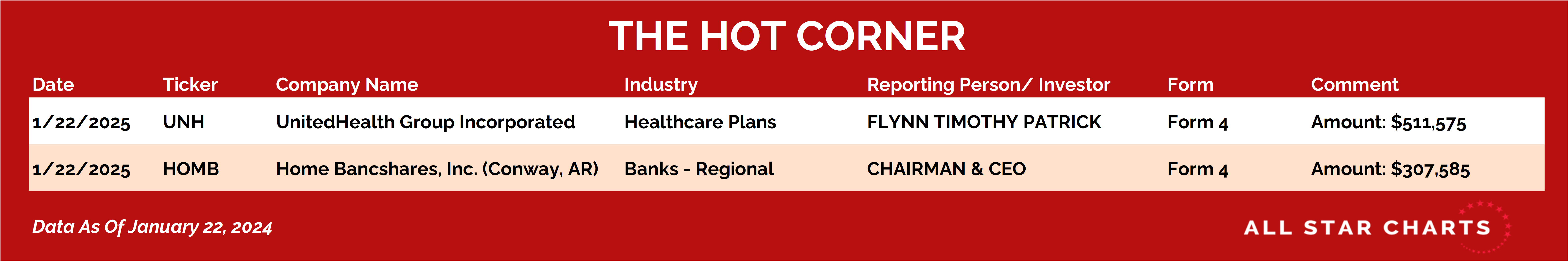 Meanwhile, over at Home BancShares $HOMB, Chairman, CEO, and Co-Founder John W. Allison put his money where his mouth is, snapping up 10,000 shares.