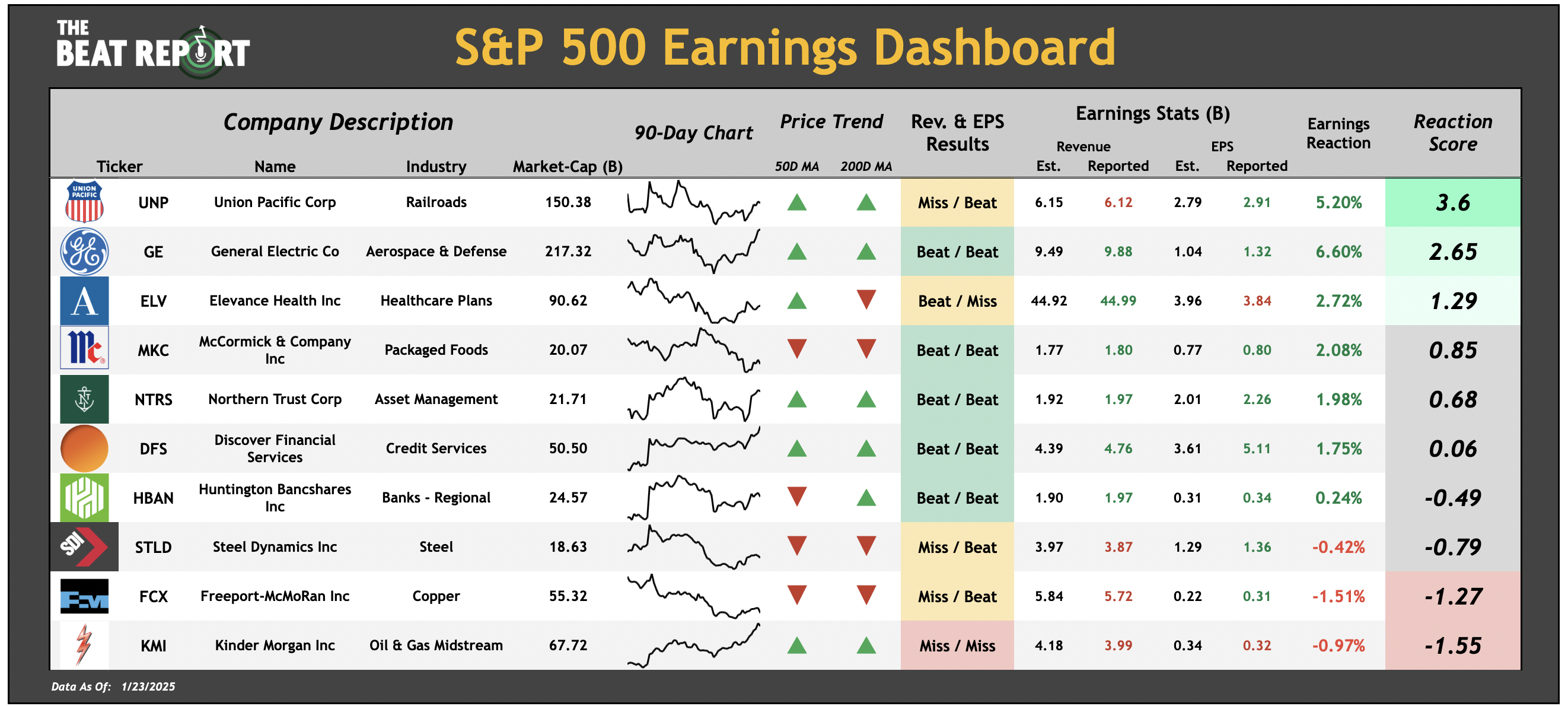 Union Pacific $UNP reported mixed results but rallied over 5% with a reaction score of 3.60. The company plans to repurchase between $4 and $5B during 2025.