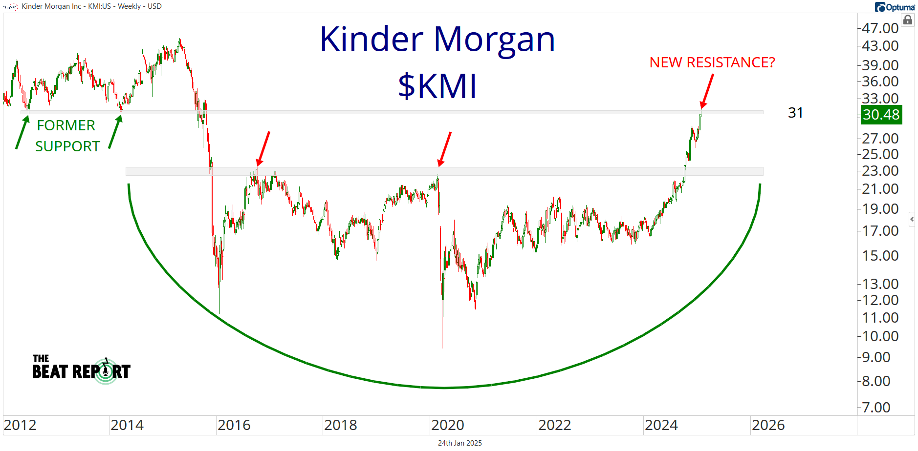 While KMI seems to be in the early stages of a corrective wave, we would be buyers on strength above 31.