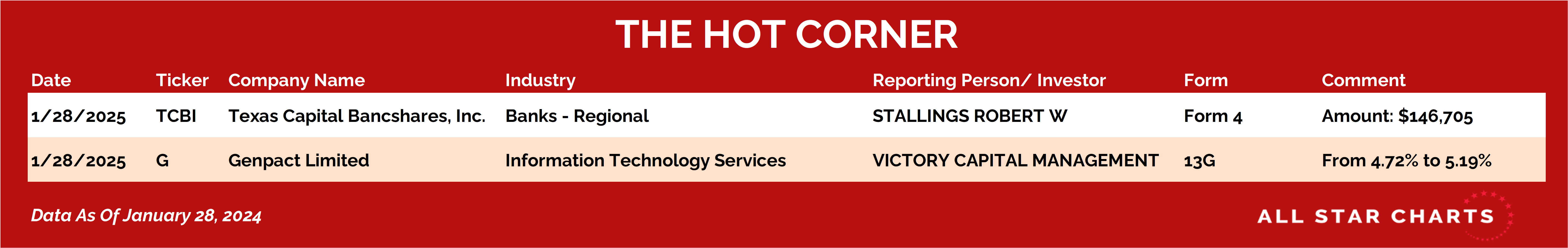 Today’s standout insider transaction comes from Robert W. Stallings, director of Texas Capital Bancshares $TCBI.