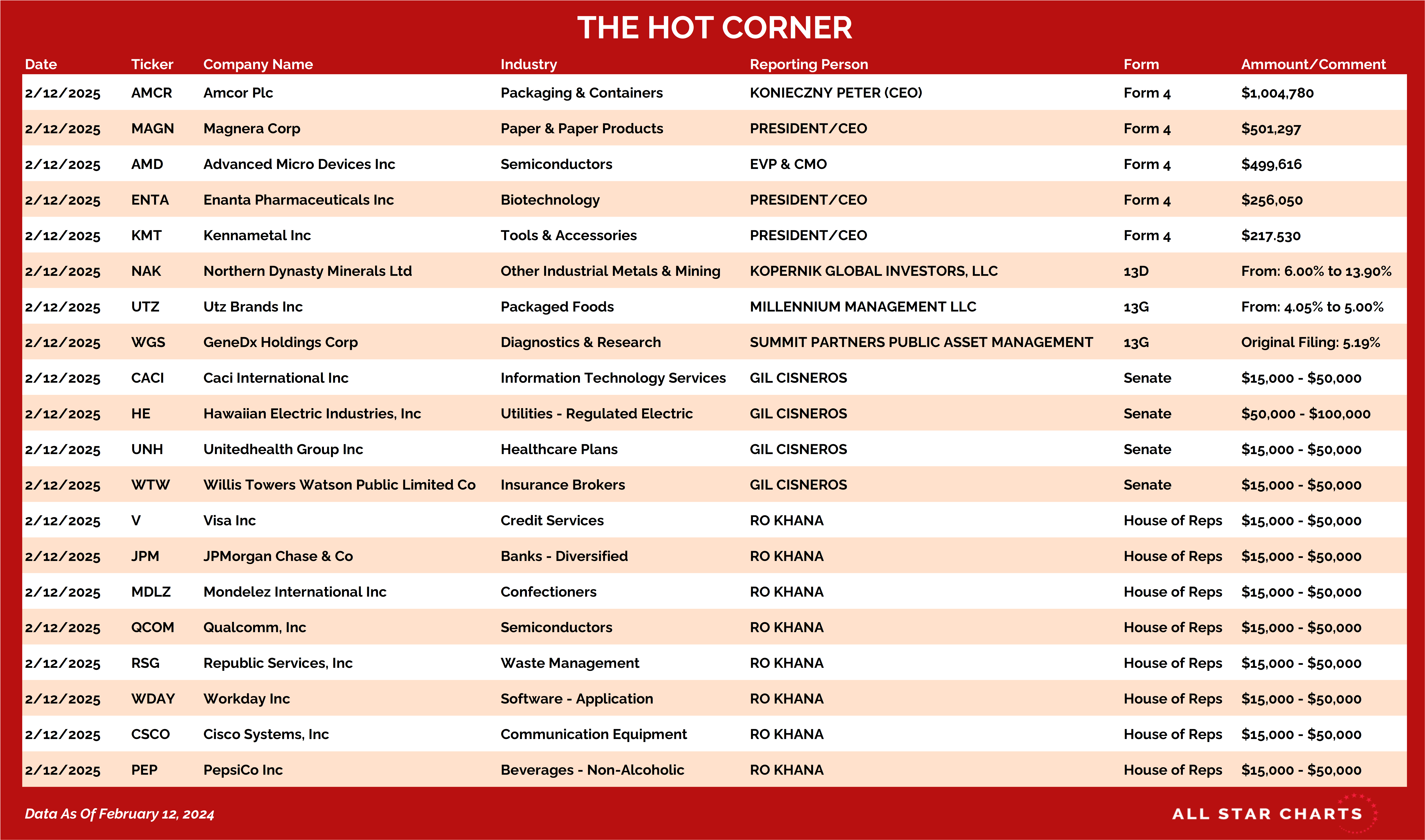 Here’s The Hot Corner, with data from February 12, 2025: