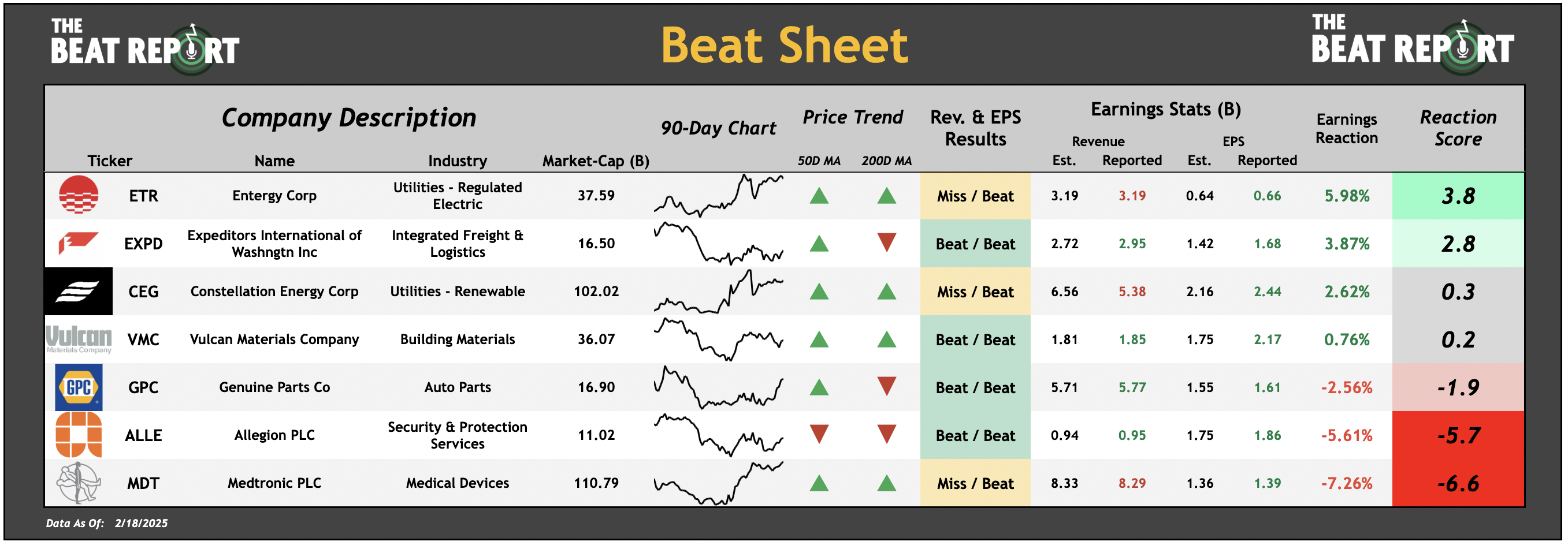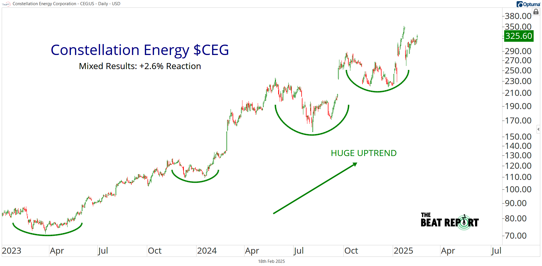 Constellation Energy was the largest company to report. It reported mixed results and rallied 2.6% with a reaction score of 0.3. It was muted.