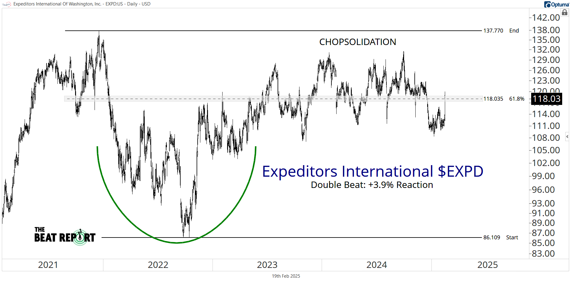 Expeditors International reported a double beat and rallied nearly 4% with a reaction score of 2.8. It was a great report.
