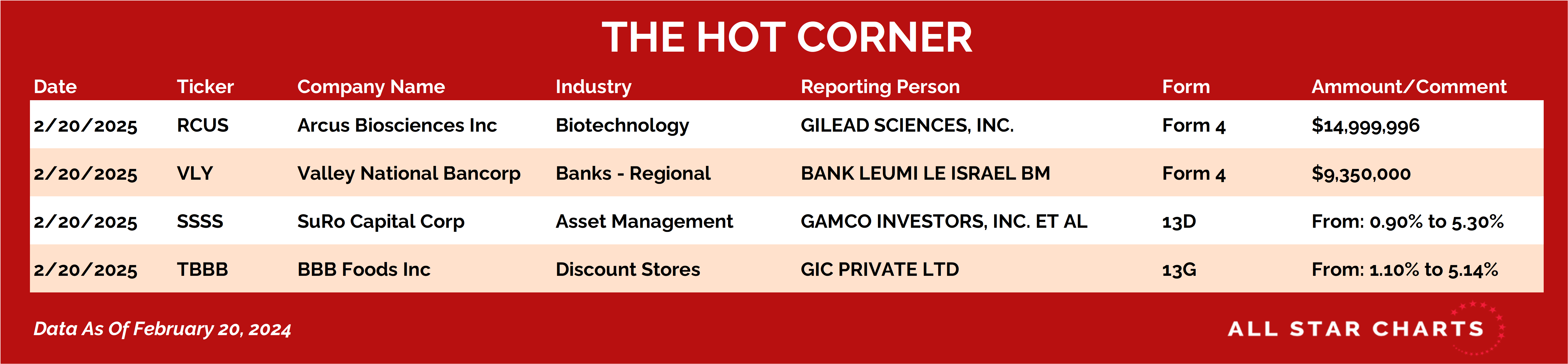 Here’s The Hot Corner, with data from February 20, 2025: