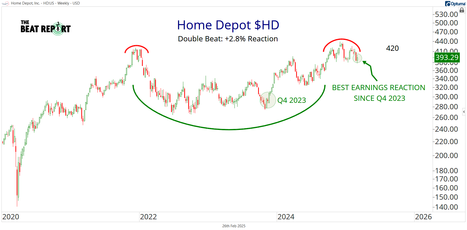 As you can see, the last time Home Depot had a great earnings reaction like this, the stock rallied for multiple months.